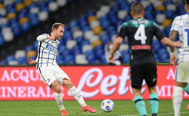 Эриксен принял мяч в левом фланге чужой штрафной, но почему-то зазевался, и Политано спокойно лишил его мяча.