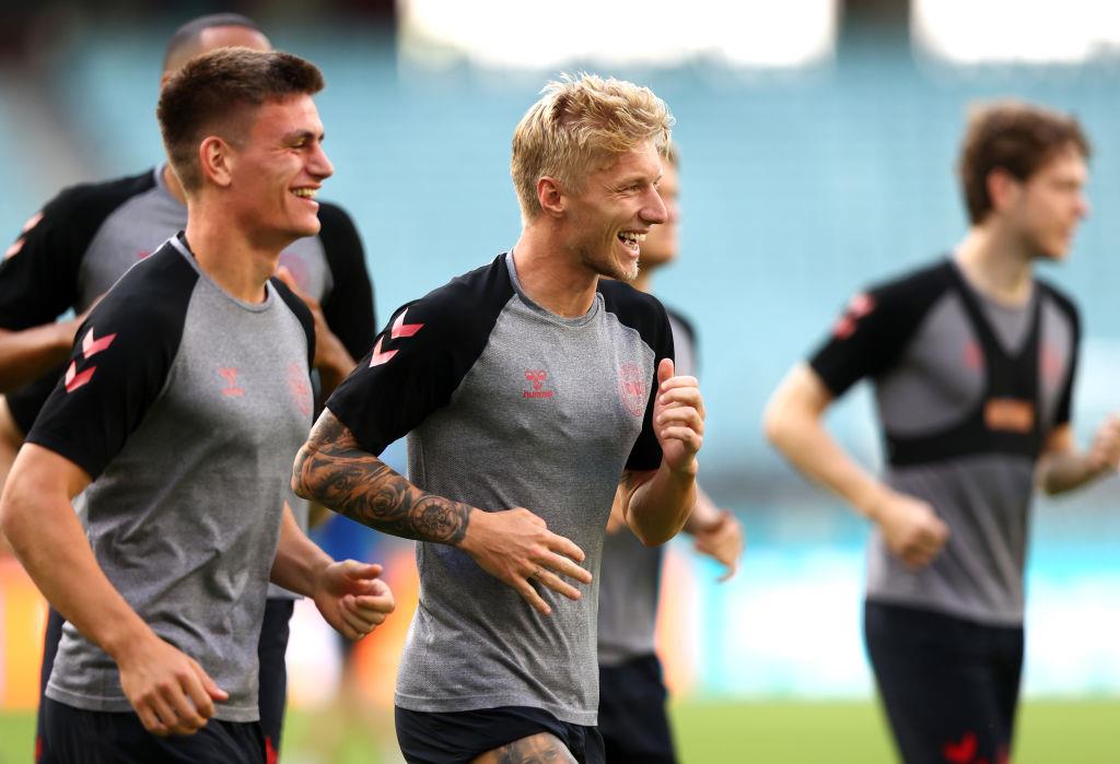 Дания: Шмайхель — Кристенсен, Кьер, Вестергор — Стригер Ларсен, Хойбьерг, Дилейни, Мехле — Брайтвейт, Дольберг, Дамсгор.