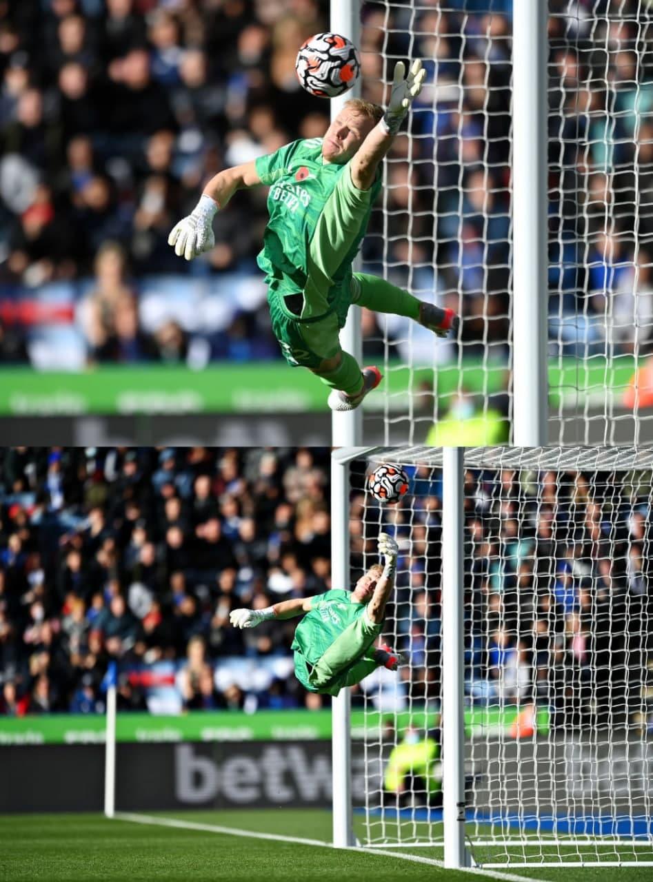 ПАРТЕЙ! Шмайхель забрал мяч, после удара соперника со входа в правый фланг штрафной, который летел в дальний угол.