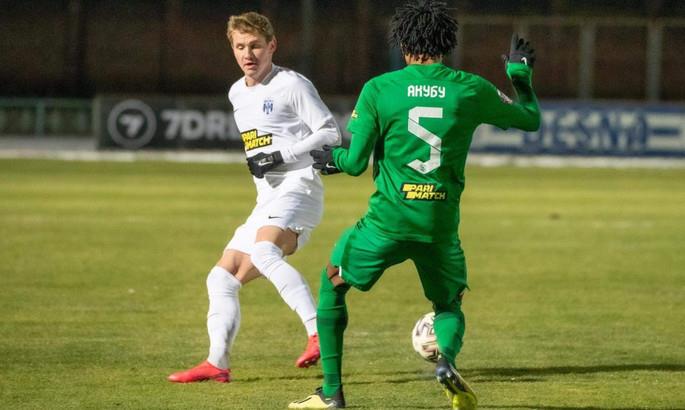 Ризнык нырял в ноги Безбородько на левом фланге вратарской, соперник упал, но голкипер был первым на мяче.