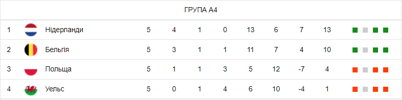 - Нідерланди вийдуть у фінальну стадію з першого місця, якщо не програють Бельгії із різницею у три м'ячі та більше.
