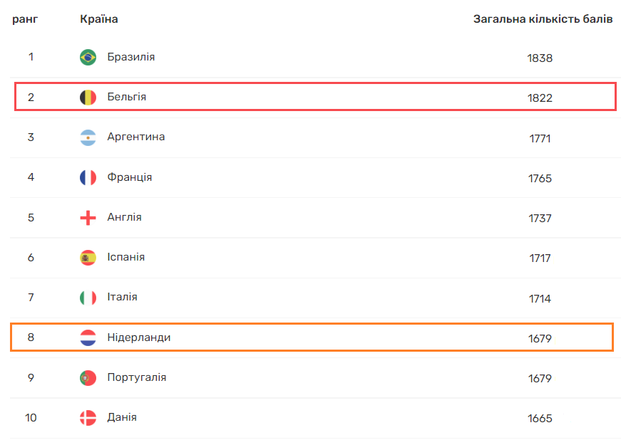 - Бельгія стане першою у разі перемоги над Нідерландами з різницею у три м'ячі та більше.