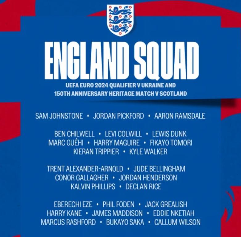 Англія: Пікфорд — Вокер, Гєї, Магвайр, Чілвелл — Беллінгем, Гендерсон, Райс — Сака, Кейн, Меддісон.