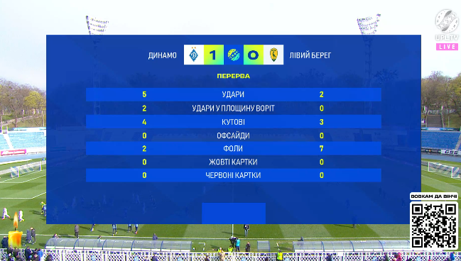 Команди пішли на перерву. 1:0 у нашому матчі після завершення першої половини.