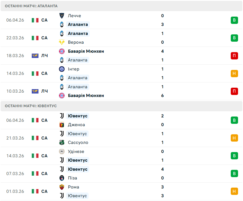 У рамках 32-го туру італійської Серії А-2025/26 у Бергамо місцева Аталанта прийматиме туринський Ювентус.