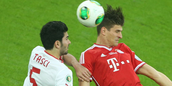 Вскоре ставка Штутгарта на контратаки едва не сработала. После подачи Максима Швайнштайгер переправлял мяч в собственные ворота, но Нойер каким-то невероятным образом сумел среагировать, запустив мяч над вратарской. Нидермайер попытался добить с близкого расстояния, но Ману снова был начеку. Прибавили швабы. Не учитывая стартовой пятиминутки, первые полчаса матча команды провели на равных.