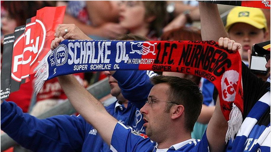 Но история одной дружбы с некоторыми оговорками длится до сих пор. Речь идет о самом известном фанатском партнерстве – отношениях фанатов Шальке и Нюрнберга. Точно неизвестно как оно завязалось, и книга на данную тему, опубликованная в 1992 году, насчитывает сразу шесть различных версий. Среди них есть красивая и душераздирающая сказка о "Ромео" из Рура и "Джульетте" из Франконии, или же вызывающая умилительную улыбку история о том, как добросердечные нюрнбергские болелы скинулись на дорогу домой бедному фанату из Гельзенкирхена. Есть свидетельства о затерянном репортаже в газете Stern, содержащем фото с гельзенкирхенцами, размахивающими красно-черными стягами (Нюрнберга, разумеется) наравне со своими. Хотя более правдоподобной кажется теория о дружбе на основании совместной ненависти к мюнхенской Баварии.