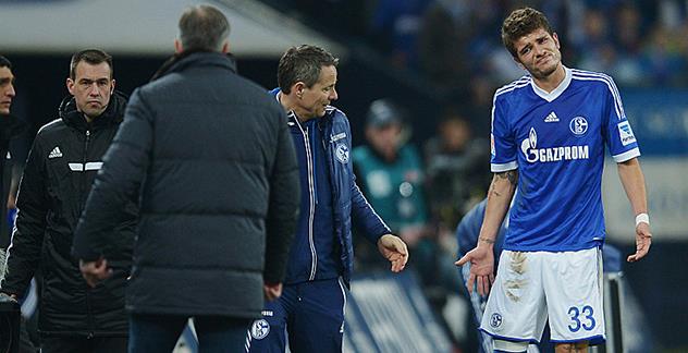 Две травмы также омрачили прекрасное выступление другой рурской команды – гельзенкирхенского Шальке. Как и в матчах с Гамбургом и Вольфсбургом, в глаза бросалась все более организованная игра команды Йенса Келлера в защите. До того, как Шальке нанес первый удар по воротам Рон-Роберта Цилера, игрокам соперника не позволяли сделать и трех последовательных передач, а первый удар в створ ворот Ферманна состоялся лишь на 66 минуте. Не в пример Кнаппен образца первого круга, немало в защите отрабатывали фланговые игроки, Фарфан и Обаси, что также временами развязывало руки крайним защитникам, которые подключались к атакам, и в итоге отличились ассистами.