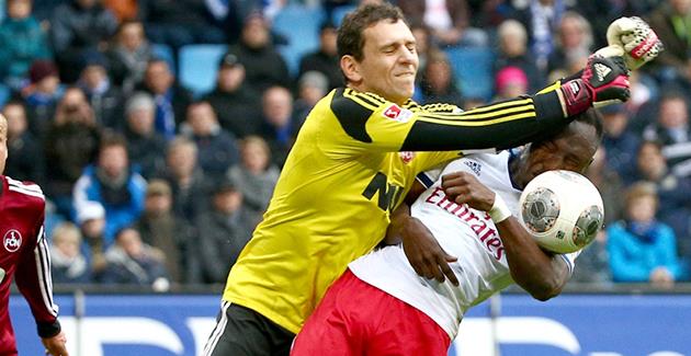 Уже в добавленное к первой половине встречи время штанга сыграла и за Нюрнберг. Анга снова ошибся и позволил Чалханоглу обойти себя на фланге и навесить – Зуа пробил в каркас ворот. Тренеры не стали проводить замен, и команды продолжили встречу в том же духе. Хозяева по-прежнему раз за разом подавали штрафные, но все без толку. А вот игроки Гамбурга апеллируют к арбитру – мяч попал в руку Францу после удара ван дер Ваарта головой, но арбитр справедливо не стал указывать на «точку».