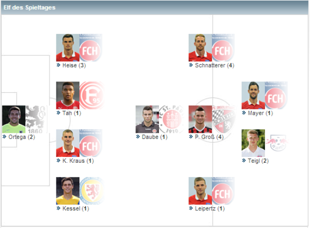 Дележ очков в Дюссельдорфе и Франкфурте выглядел еще более эффектно. В гости к Фортуне пожаловал РБ Лейпциг и имена соперников уже предвещали нечто необычное. Гости приехали без своего лучшего бомбардира и лучшего игрока БЛ2 по версии Kicker (средний балл – 2,17) Юссуфа Поульсена, который вынужден залечивать свою травму бедра.