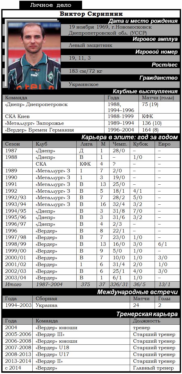 И вот – Виктор Скрипник возглавляет Вердер, и сенсация не кажется сенсацией. Этот человек прошел в клубе, ставшем родным, по всем ступенькам – один из ведущих игроков, молодой тренер, работающий с молодежью, наставник резервистов, а теперь – и «пожарник», возглавивший клуб в очень сложные для него времена. Скрипник – органическая часть современного бременского клуба, его живая легенда с очень большим послужным списком. И хотя в начале своей тренерской карьеры он говорил, что только будет приглядываться к этой работе, все подозревали, многие знали – он ступит и на эту ступеньку. И теперь он – накануне своего тренерского дебюта. Первый в истории украинский тренер, который возглавил клуб из одной из лучших лиг мира. Вспомним, с чего это все начиналось, разберемся, как так получилось и поразмышляем, что из этого может получиться.