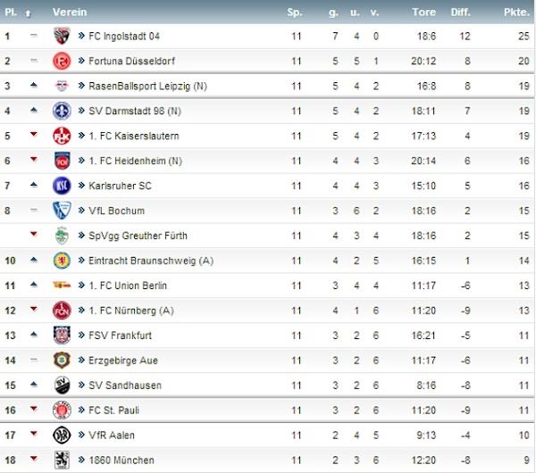 В понедельник тур увенчала битва восставшего из пепла Нюрнберга и немного сбавившего обороты Дармштадта. Еще в прошлом сезоне эти команды находились по разные стороны от БЛ2 (Дармштадт, естественно, ниже), а сейчас на равных сражаются в рамках этого турнира. Хотя, выражение «на равных» не слишком вписывается в канву матча в Дармштадте. Если на старте поединка франконцы немного прижали соперника и даже могли открывать счет (не использовал свой шанс Кандеяш), то, начиная с 39 минуты, Фиалки были безоговорочно сильнее подопечных Валерьена Исмаэля. Все дело в том, что незадолго до перерыва судейская бригада проморгала миллиметровый офсайд у Доминика Штро-Энгля, позволив тому прервать пятиматчевую голевую засуху.