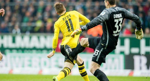 В матче Вердер – Боруссия Дортмунд свою команду подвел опытный голкипер Ярослав Дробны — он очень грубо сыграл против Марко Ройса. Случилось это на 39-й минуте поединка. Вся эта картина походила на известное "Это Спартааааа!".