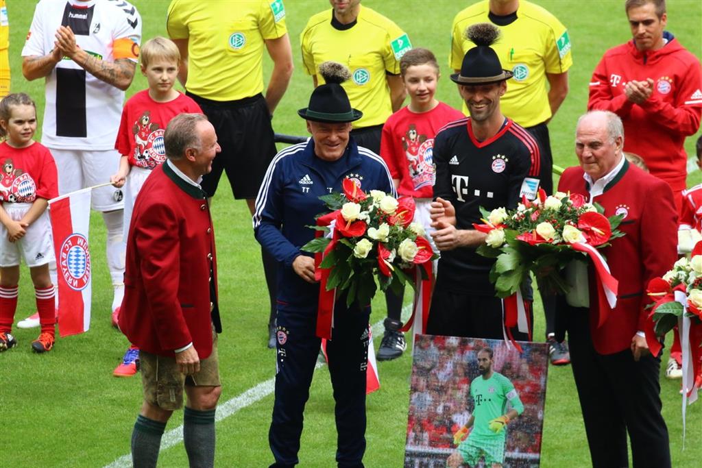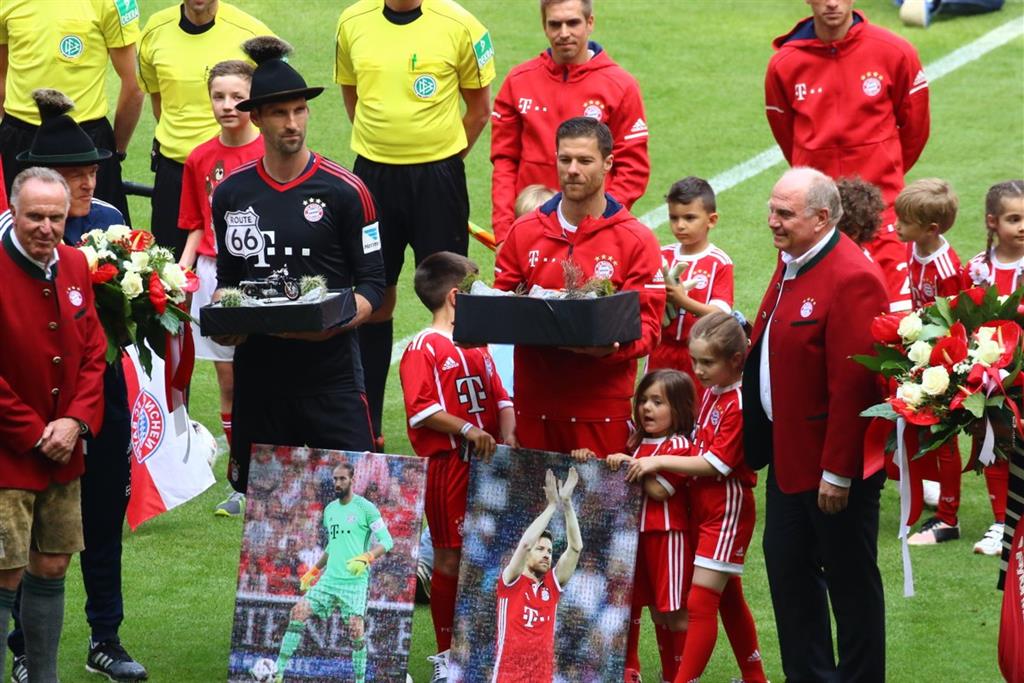 Капитан команды Филлип Лам, полузащитник Хаби Алонсо и голкипер том Штарке перед стартом матча получили памятные подарки от клуба, а также искупались в овациях переполненной Альянс Арены.