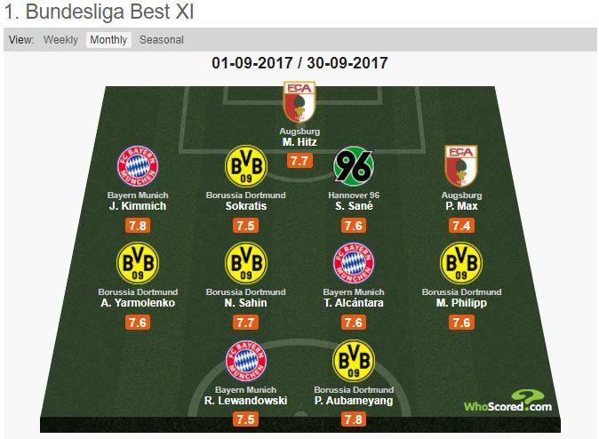 Символическая сборная месяца в Бундеслиге выглядит следующим образом:
