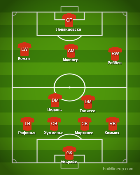 Бавария будет без Франка Рибери после того, как он получил травму в своем последнем матче с Гертой, Коман выйдет на место француза. Давид Алаба также не сможет принять частия в матче из-за травмы голеностопа, Рафинья закроет левый фланг. Можно ожидать старую-добрую схему 4-2-3-1.