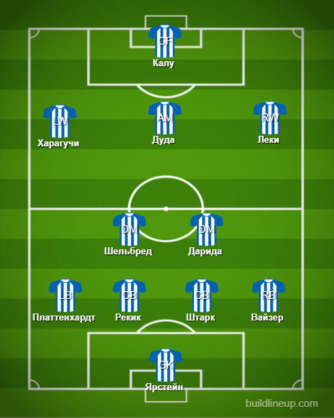 Саломон Калу снова возглавит линию нападения Герты, из-за отсутсвия капитана Ибишевича. Штарк и Рекик будут отбивать численные атаки “горняков”.