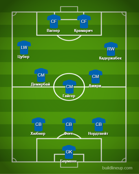 Нагельсманн играл 4-3-3 в последнем матче во Фрайбурге, но стоит ожидать, что Хоффенхайм вернется к 3-5-2. Фогт вернется в центр защиты вместе с Нордвейтом и Хюбнером. Востановившийся Демирбай начнет матч в старте.