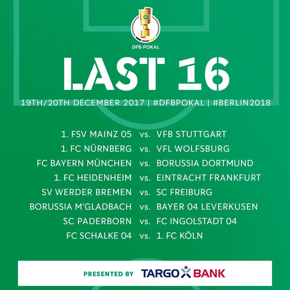 Матчи 1/8 финала Кубка Германии состоятся 19 и 20 декабря 2017 года.