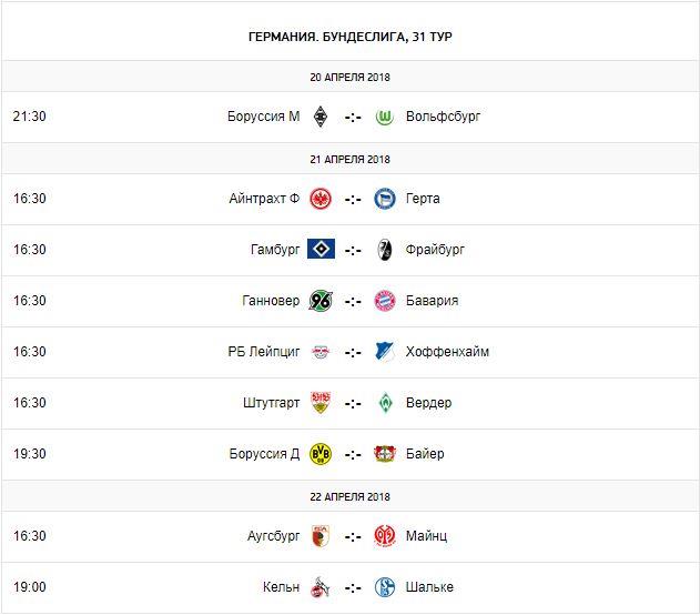 31-й тур Бундеслиги откроется матчем в Менхенгладбахе, где Боруссия постарается набрать очки в поединке с Вольфсбургом.