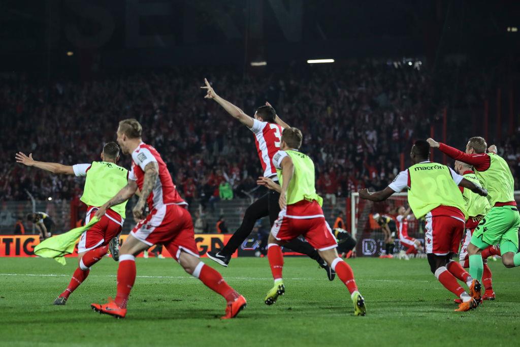 Унион Берлин в следующем сезоне впервые в своей истории дебютирует в Бундеслиге. В переходных поединках плей-офф "железные" — именно так свою команду с незапамятных времен величают болельщики — расписали боевую результативную ничью на выезде против Штутгарта, а нули дома вызвали настоящую эйфорию на Ан дер альтен Ферстерай, стадионе, который еще в 2009 году находился в полуразобранном состоянии.