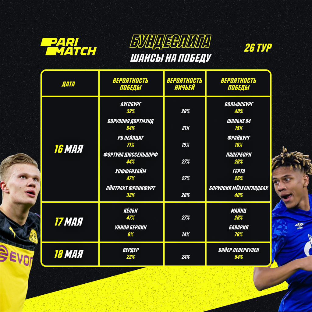 Анонс сего тура уже доводилось писать, но всем известные события не дали матчам состоятся. И вот, время пришло, и 26-й игровой день в чемпионате Германии вот-вот будет сыгран, что вызывает радость у миллионов болельщиков по всему миру. Немцы вообще молодцы — последними из топ-лиг прекратили играть и первыми возобновили турнир. Что же, перейдем наконец к футбольной составляющей.