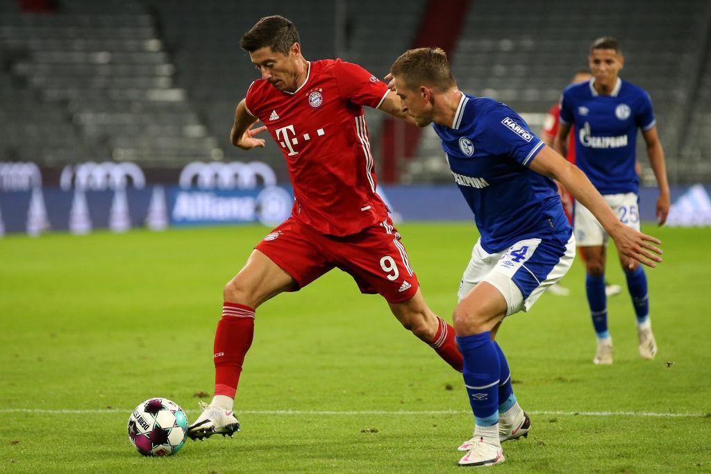 На первых минутах Шальке здорово атаковал и прессинговал, что вызвало у мюнхенцев некоторые трудности, но ответили они взятием ворот — Гнабри получил передачу из глубины и с левой ноги послал мяч в угол ворот. 1:0. Оборона гельзенкирхенцев разваливались прямо на глазах. Буквально через минуту Сане выкатил мяч на Левандовски в штрафной соперника, а тот пробил, но защитник в подкате Шальке спас.