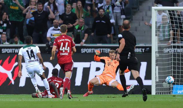 "Жеребцы" прекрасно знают, как играть в тотальный прессинг на газоне родного стадиона, поэтому уже со стартового свистка принялись вытаптывать его на чужой половине поля. Оборона Баварии с таким давлением попросту не справлялась, ее футболисты терялись в простых ситуациях, но при этом старались играть встречным темпом, на чем, в итоге, и прогорели достаточно быстро. Дэвис ошибся при пересечении центральной линии, а мгновенный ответный выпад в ситуации один на один с Нойером завершил Плеа, забив тем самым первый гол нового сезона Бундеслиги.