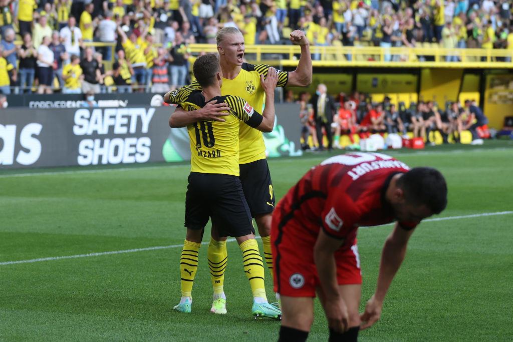 В рамках первого тура немецкой Бундеслиги дортмундская Боруссия обыгрывает франкфуртский Айнтрахт.