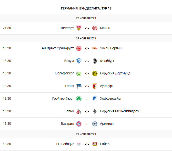 Расписание следующих матчей: