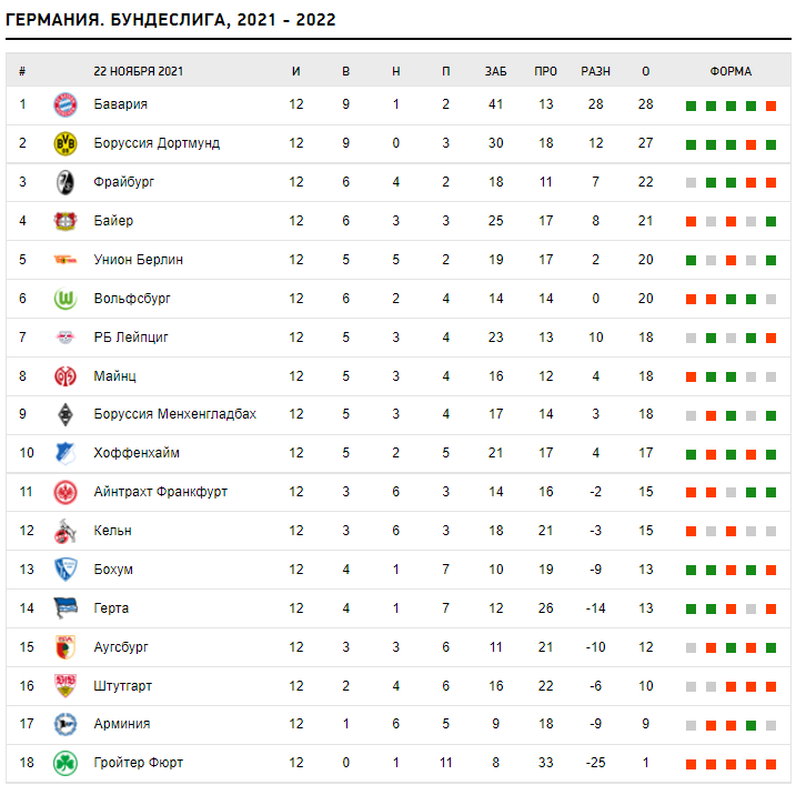 Турнирная таблица:
