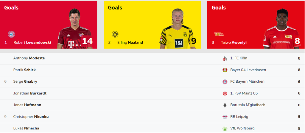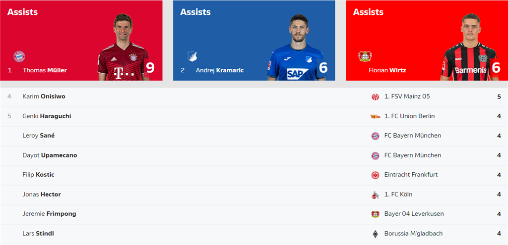 Трапп (Айнтрахт Фр) — Фримпонг (Байер), Гриллич (Хоффенхайм), Тута (Айнтрахт Фр), Яго (Аугсбург) — Триммель (Унион), Хофманн (Боруссия М), Штиндль (Боруссия М), Ройс (Боруссия Д) — Нмеча (Вольфсбург), Даббур (Хоффенхайм)