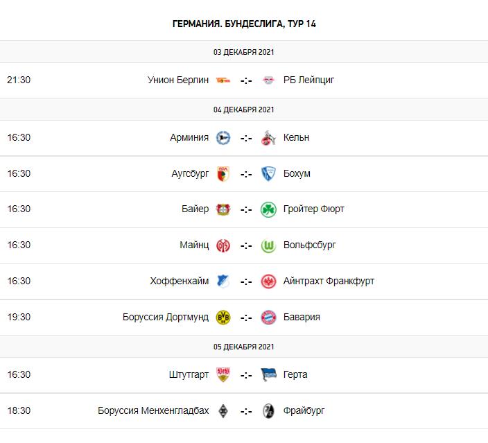 Расписания матчей следующего тура