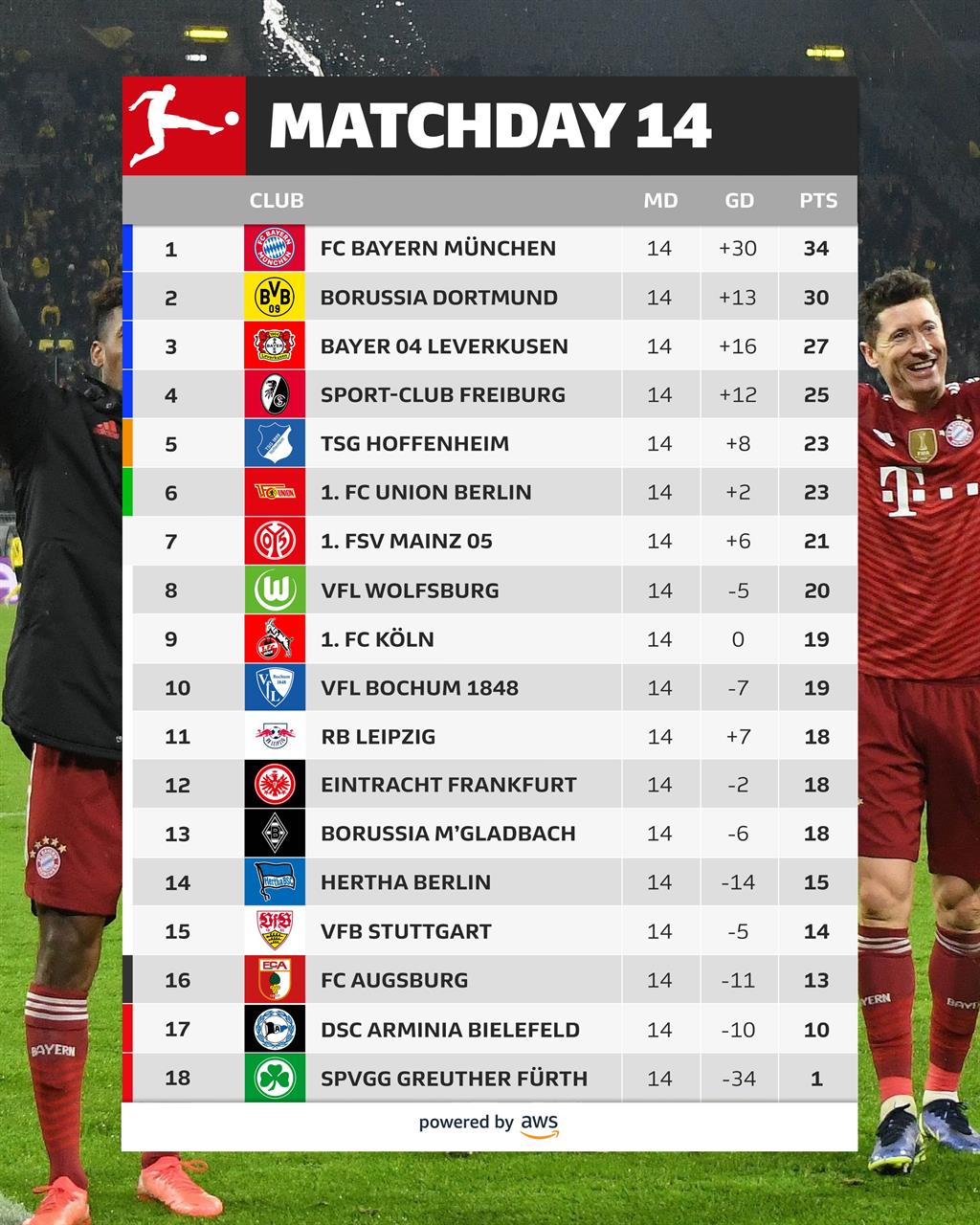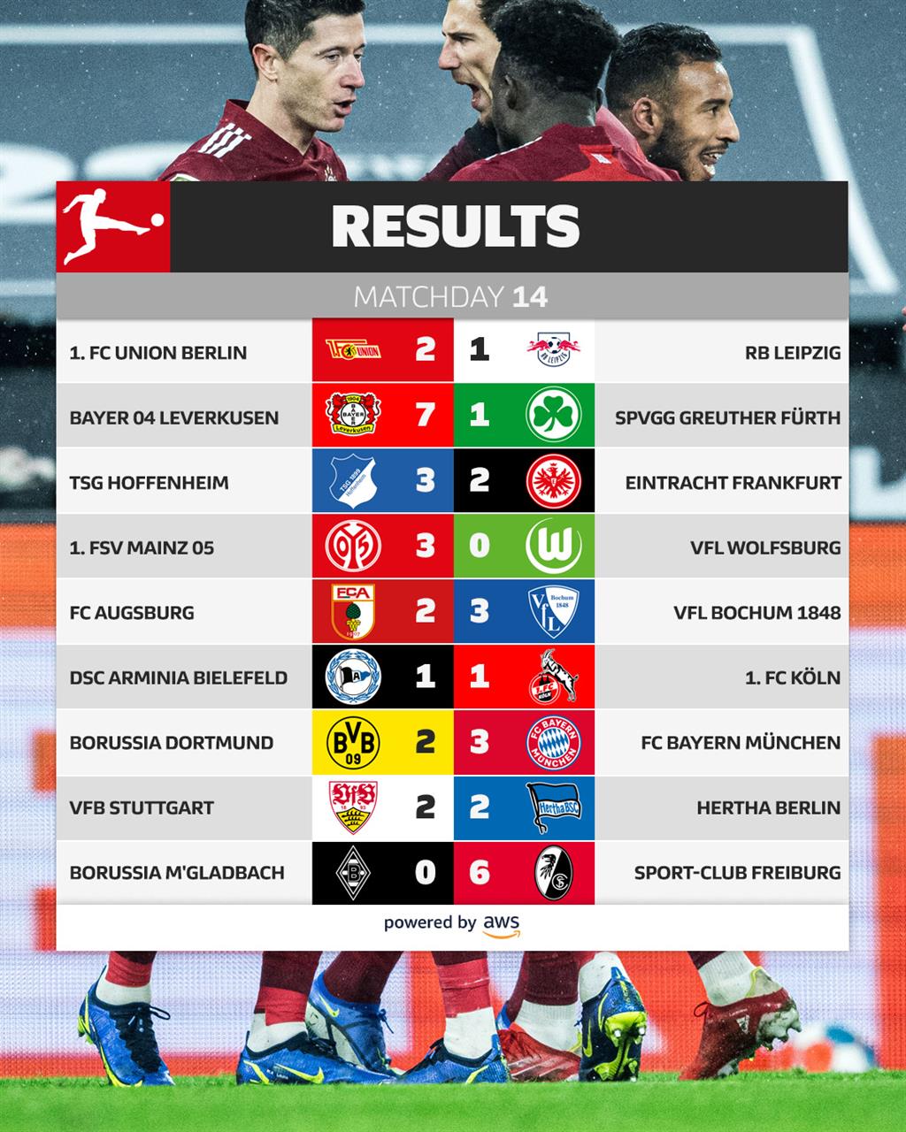 Нойер – Павар, Упамекано, Л. Эрнандес (Зюле, 74), Дэвис – Горецка (Мусиала, 65), Толиссо – Коман (Куасси, 88), Мюллер, Сане (Гнабри, 65) – Левандовски