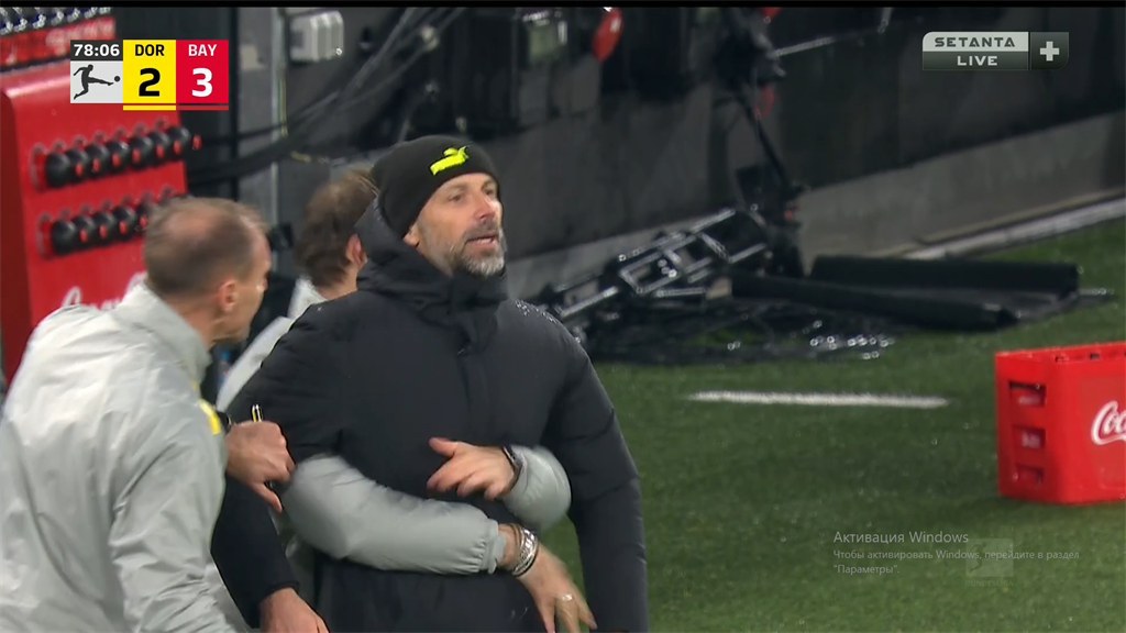 Беснующийся Марко Розе у бровки, которого едва удалось угомонить его помощнику.