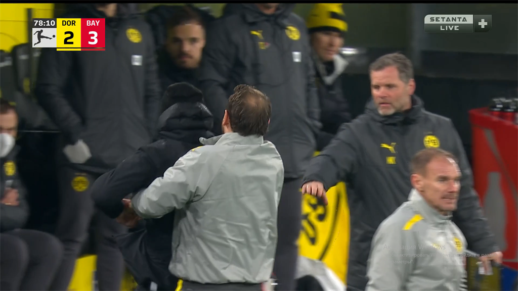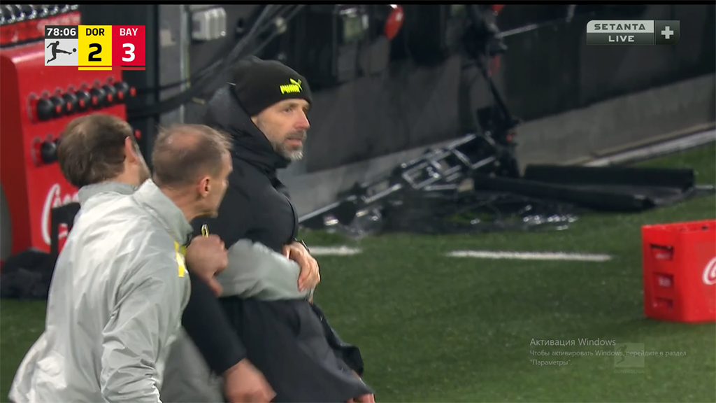 Из важного стоит еще отметить, что, а) Юлиан Брандт жестко столкнулся головами с Упамекано, покинув поле на носилках; б) как ни старались помощники унести Марко Розе (см. прикол тура) подальше от споров с арбитром, он в итоге отправился досматривать матч на трибуну; в) арбитр накинул целых 10 (!) добавленных ко второму тайму минут. Давненько такого не доводилось видеть. Ну, и кульминация работы Боруссии на трансферном рынке в последние окна. Когда Нагельсманн бросает для усиления атаки Гнабри и Мусиалу, Розе приходится выпускать Шульца и Тиггеса (а периодически Рейниера с Моукоко). Актуальная шутка: даже стая голубей во вчерашнем матче закрывала левый фланг дортмундцев лучше Нико.