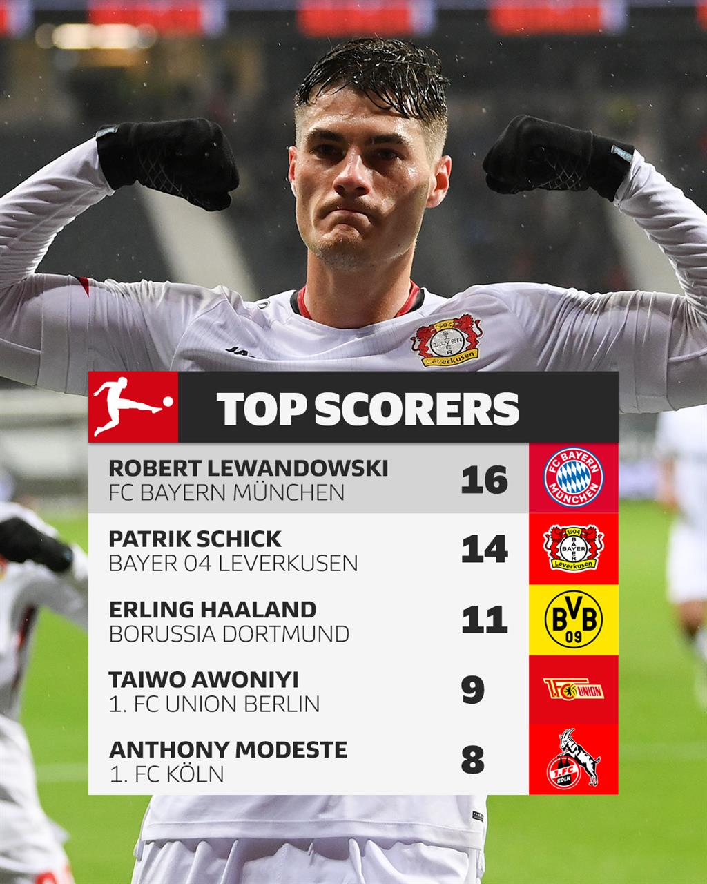- Патрик Шик забил 14 голов в 15 турах Бундеслиги кампании-2021/22. Ранее ни один форвард Байера не мог похвастаться подобными показателями на этом отрезке чемпионата.
