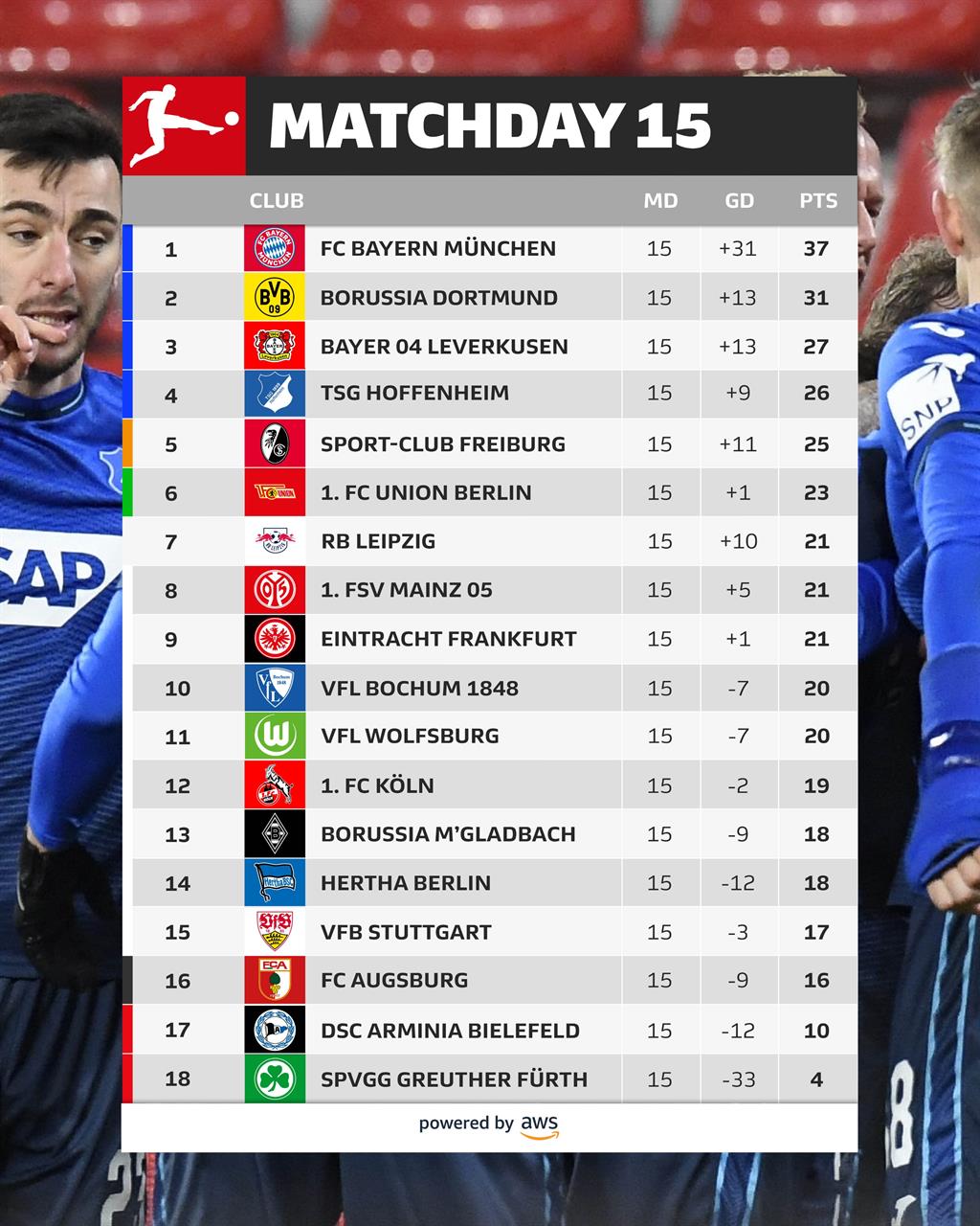 Бундеслига близится к своему завершению в этом календарном году. В очередном туре хватало интересных событий – это и волевая победа Баварии, и досадная ничья Боруссии в малом дерби Рура, и впечатляющий дебют Доменико Тедеско у руля Лейпцига.