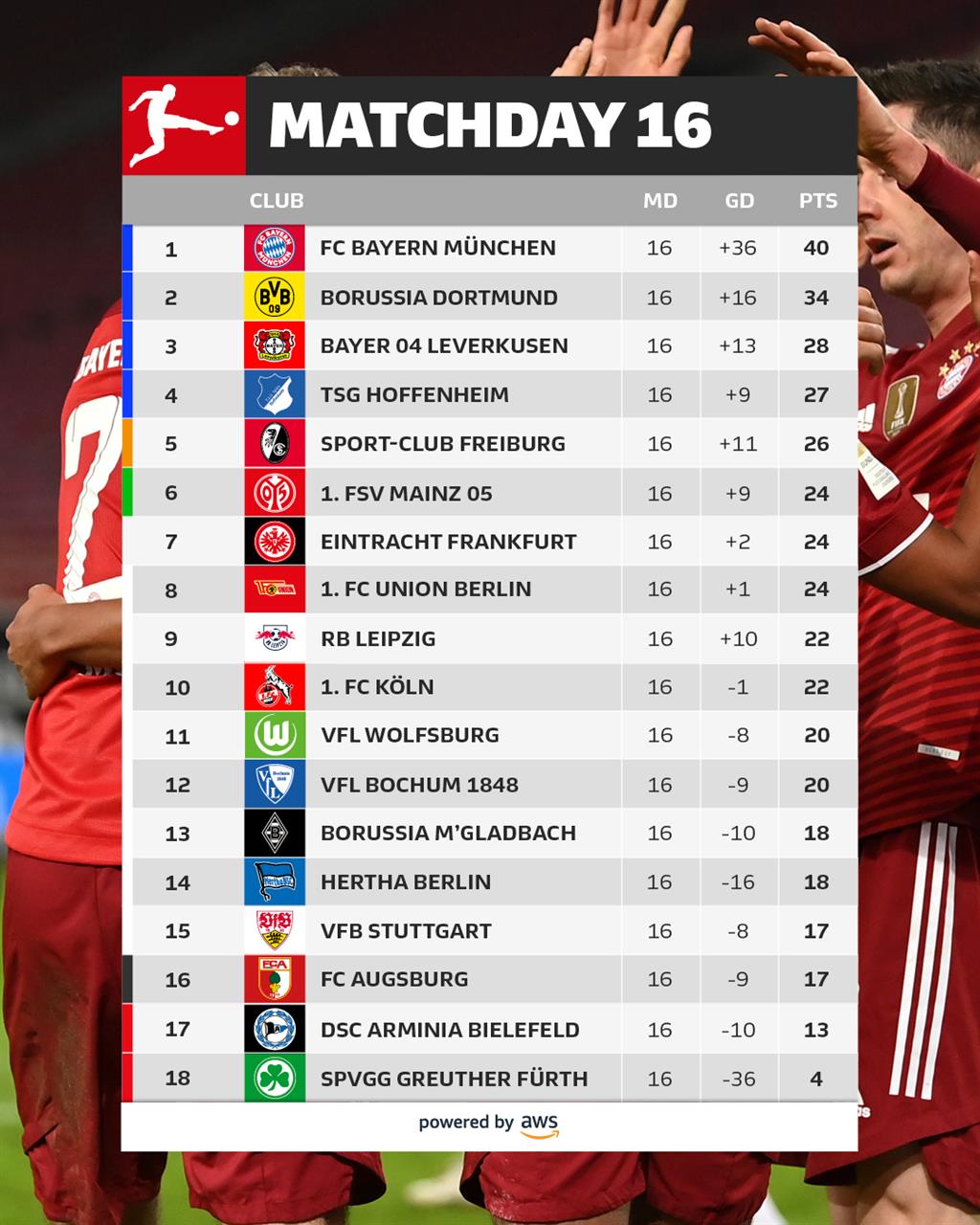 Тур №16, состоявшийся посреди недели, дал нам имя зимнего чемпиона Бундеслиги, яркий матч на Фольксваген Арене, и многое другое.