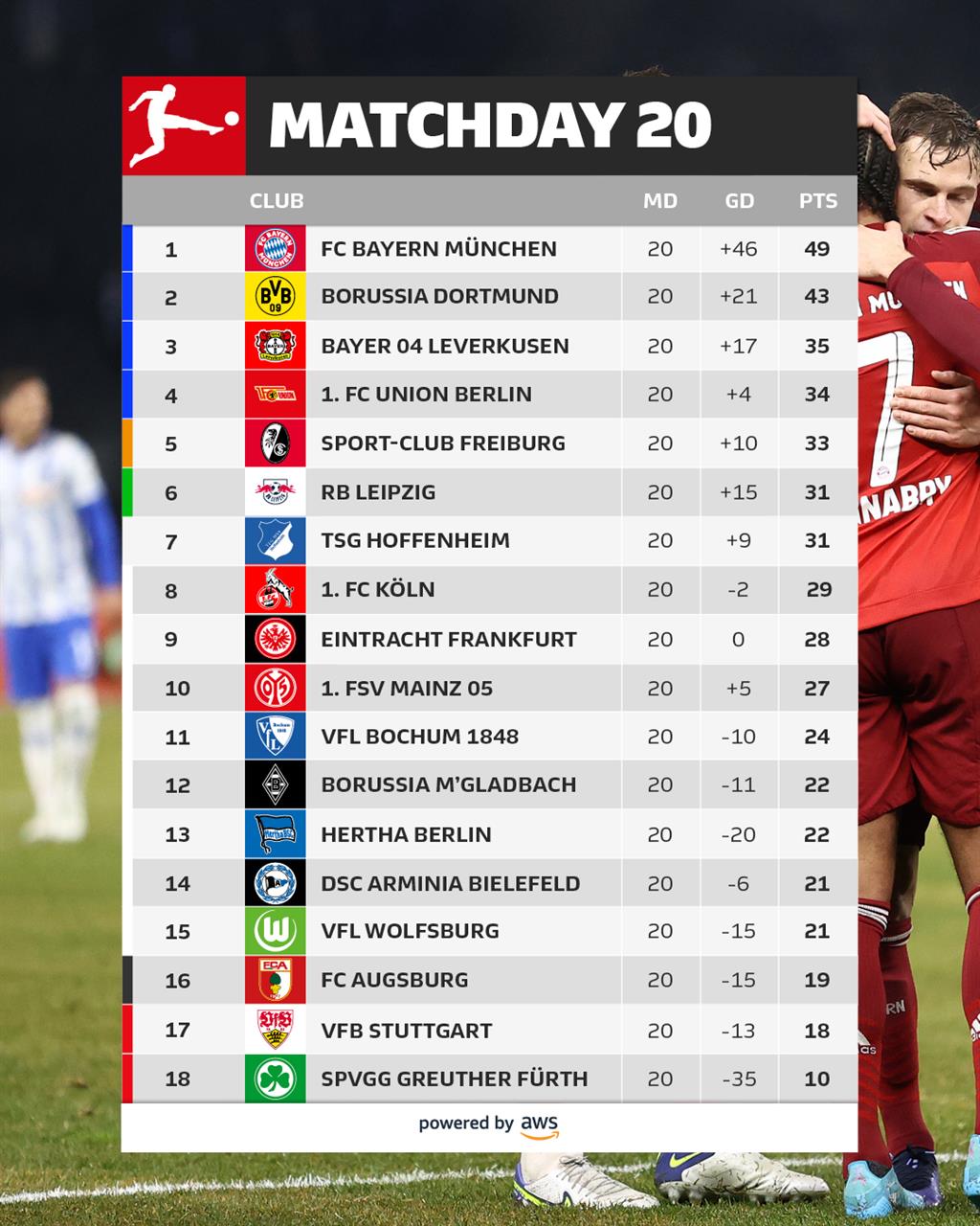 - 65 голов Баварии после 20 туров являются новым рекордом лиги.