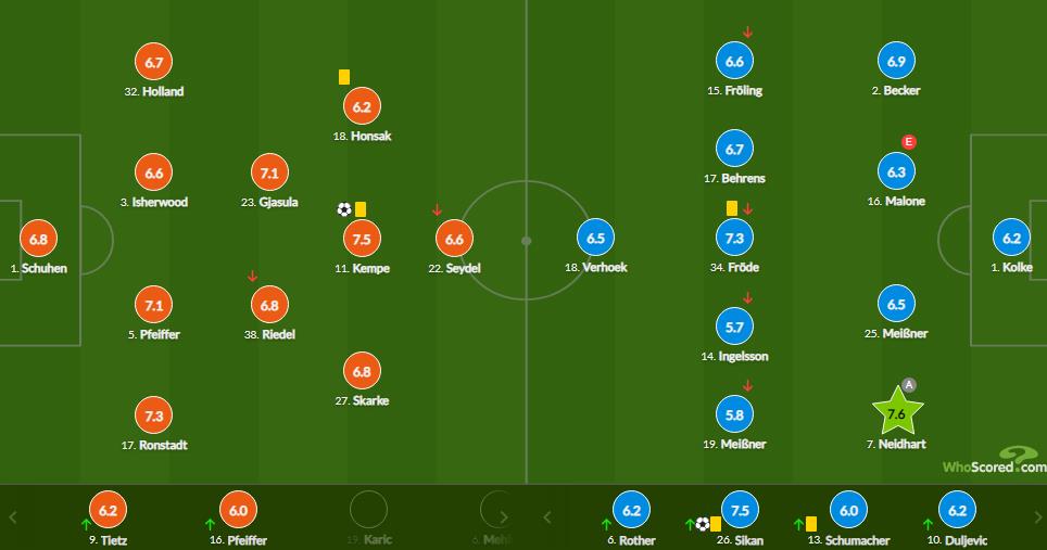 При этом отметим, что единственный удар Сикана в створ ворот соперника оказался результативным, что позволило ему забить первый гол в немецкой команде. Для него это был третий матч в Германии.