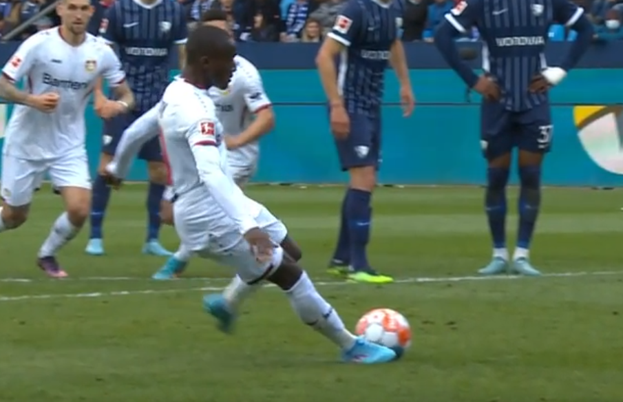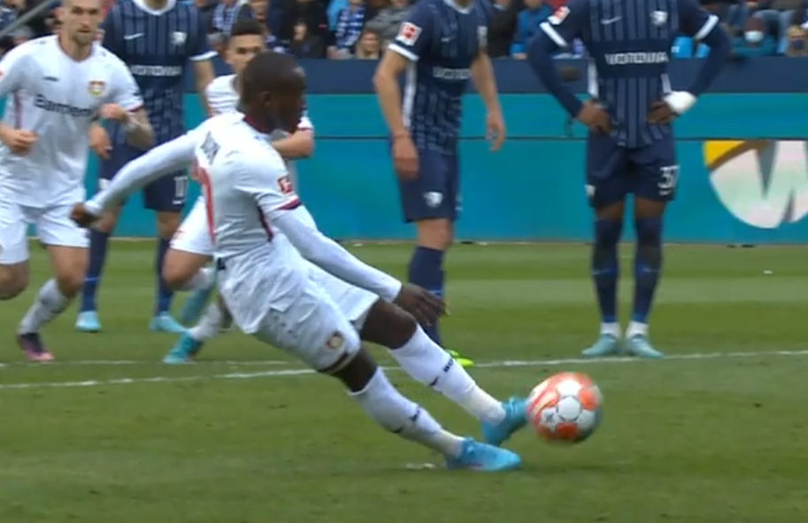 Під час удару Мусса Діабі підсковзнувся і забив другим дотиком м'яча. Незважаючи на те, що форвард Баєра м'яч опинився у сітці воріт Бохума, гол довелося скасувати через цей другий дотик.