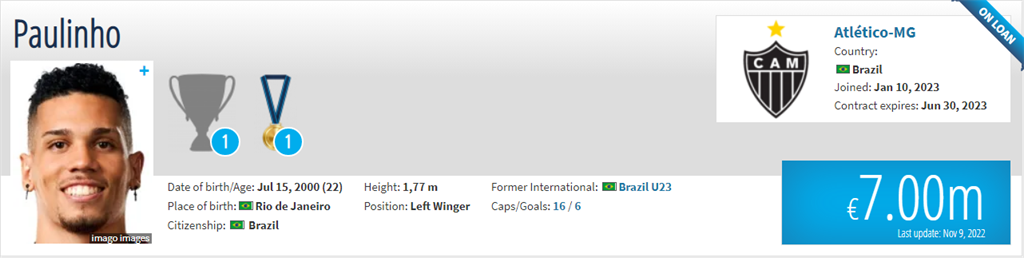 22-річний гравець вирушив в оренду в Атлетіко Мінейро. Оренда розрахована до літа 2023 року без опції викупу.