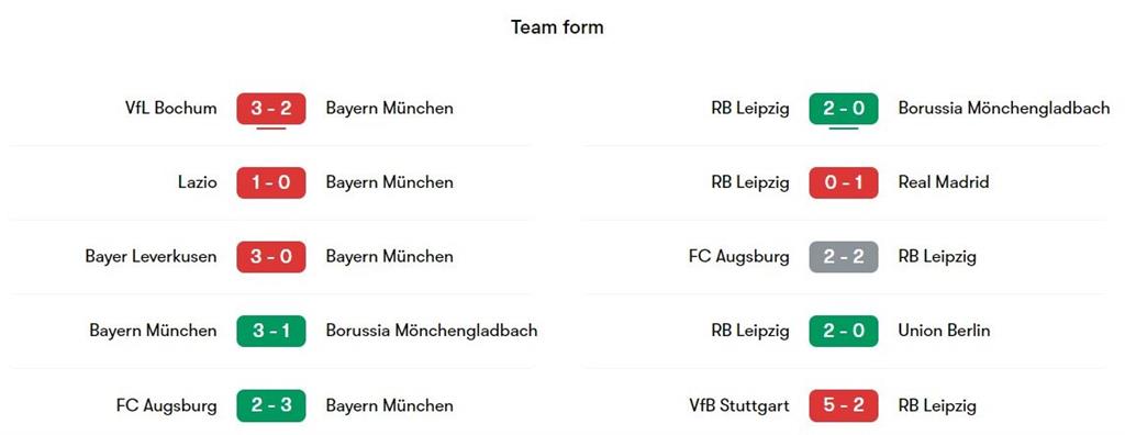 Лейпциг вміє здобувати результат саме на Альянц Арені. У 2023 році РБ виграв з рахунком 3:1, а в 2020 році, в більшості завдяки 1+1 від Еміля Форсберга, вдалося зіграти внічию з рахунком 3:3. У суперкубку Німеччини цього сезону також була перемога у виконанні цієї команди, а в Бундеслізі в домашньому для команди Марко Розе була нічия 2:2. Загалом частіше саме вдома вигравала саме Баварія, тому є невеликим фаворитом цього матчу.