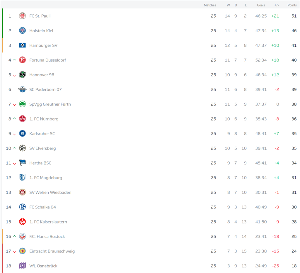 На першому місці турнірної таблиці другого німецького дивізіону зараз знаходиться Санкт-Паулі, вихід якого до Бундесліги на даному етапі майже не викликає сумнівів. Другим іде Гольштайн, що відстає від лідера на 5 очок. Гамбург замикає трійку, потенційно отримуючи право зустрітися з 16-м колективом Бундесліги.