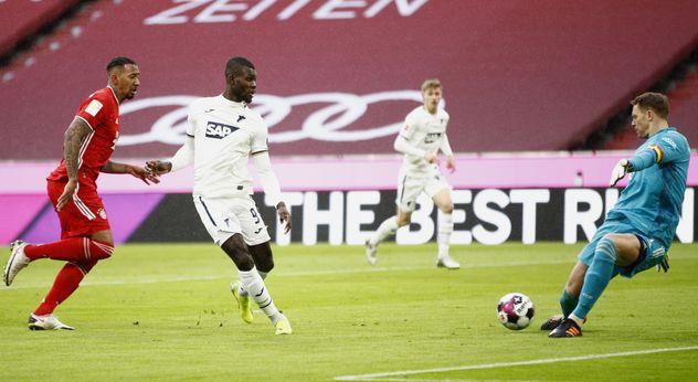БАУМАНН! Гнабри сумел убрать Джона на замахе в правом фланге штрафной, после чего пробил с острого угла в ближний, но голкипер закрыл собой ворота!