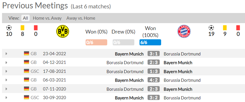 — Баварія виграла десять з останніх одинадцяти ігор Бундесліги проти Боруссії Дортмунд, а нещодавно вперше в цій парі було встановлено сім перемог однієї зі сторін поспіль.