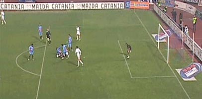 Оба своих гола игроки "Палермо" забили с нарушением правил. Как мы четко видим на стоп-кадре (спасибо Андрею Шахову) Караччьоло находится в положении "вне игры". Лежащий на газоне футболист в белой форме пасует на Андреа и тот открывает счет.