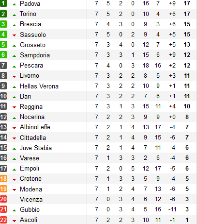 7 - Падова, Торино, Брешиа, Гроссето, без поражений