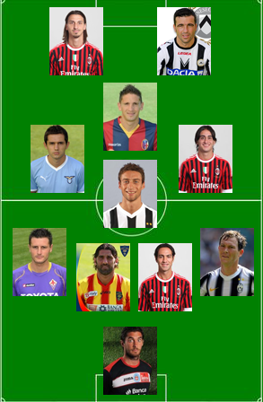 Фонтана (Новара) (1) - Лихтштайнер (Ювентус) (2), Неста (Милан) (1), Карроццьери (Лечче) (1), Паскуаль (Фиорентина) (2) - Лулич (Лацио) (2), Аквилани (Милан) (1), Маркизио (Ювентус) (2) - Рамирес (Болонья) (1) - Ибрахимович (Милан) (2), Ди Натале (Удинезе) (2)